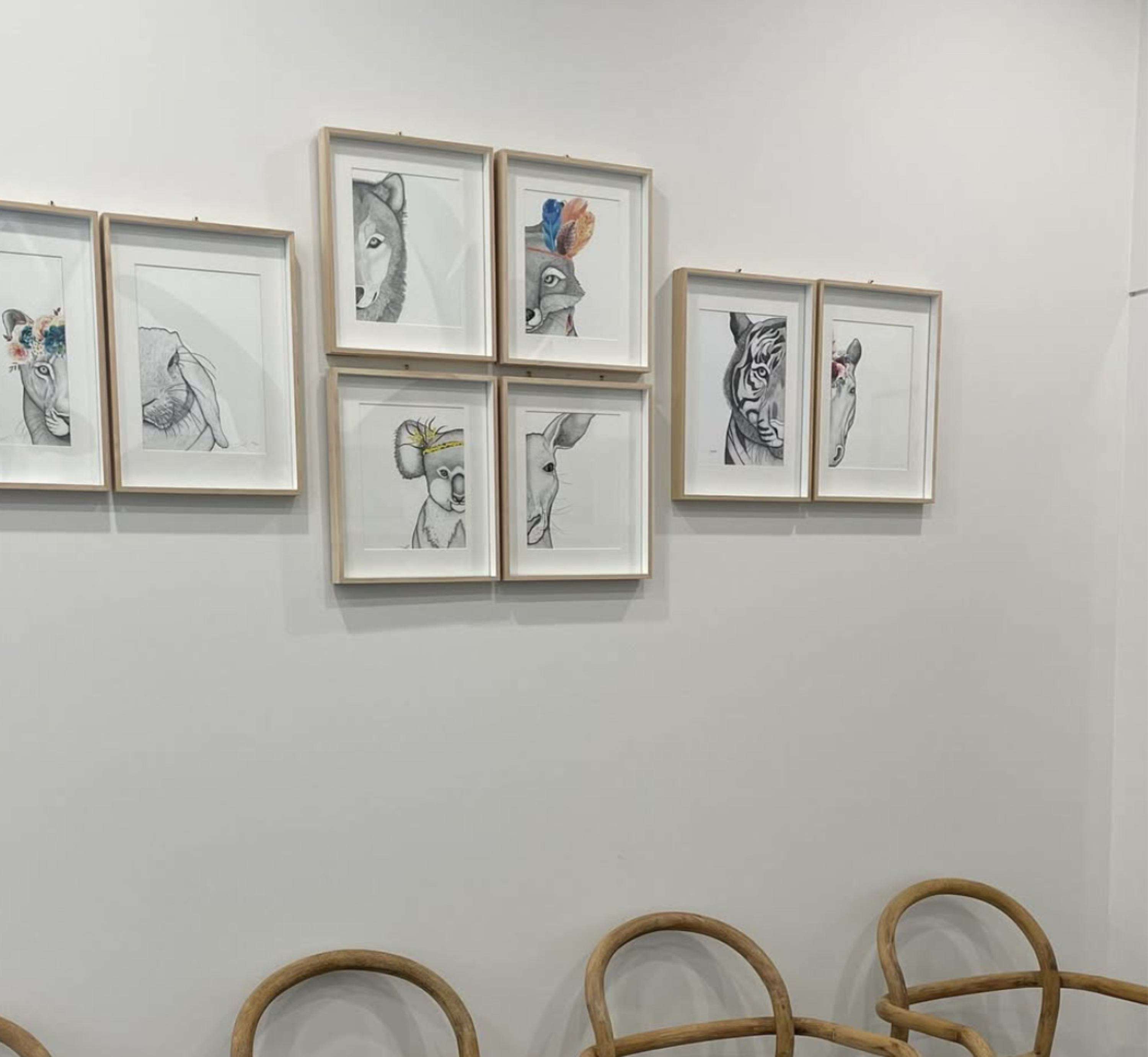 Our connection with Dots by Donna wasn’t just a sudden decision; it stemmed from genuine admiration. Dr. Sara Dudley has been a huge fan of Donna’s distinctive dot animal artwork for years, even collecting her prints. Having seen her vibrant creations at local art markets, the unique shape, captivating colour palettes, and pure fun embedded in her style always stood out. There’s an undeniable warmth and joy in her work that we knew would enhance the aesthetics of our practice.
